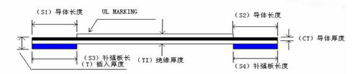 那么插接端CT的厚度呢,插接端厚度也是由三部分組成,銅線厚度,下層膠膜厚度,補強(qiáng)板厚度(如上面第一圖藍(lán)色部分)這個插接端常規(guī)厚度是0.3mm,如常規(guī)銅線厚度0.035mm,常規(guī)膠膜厚度0.043mm,常規(guī)補強(qiáng)板厚度0.225mm,加起來就是0.3mm厚度。這個也是FFC軟排線的標(biāo)準(zhǔn)插接端厚度,因為FPC連接器的插槽的縫隙也是0.3mm,所以這樣,排線端部插入連接器就是一個標(biāo)準(zhǔn)的配合,不松不緊。