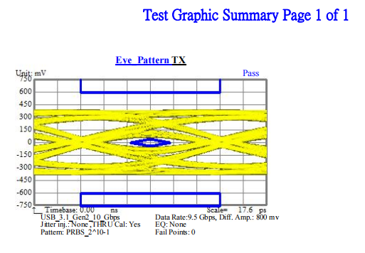 下面圖九是不貼復(fù)合鋁箔傳輸數(shù)率圖,為7.0Gbps;圖十是貼上復(fù)合鋁箔線纜的傳輸數(shù)率圖,為9.5Gbps,顯然貼上復(fù)合鋁箔后,線纜可以傳輸更高頻率信號(hào)。